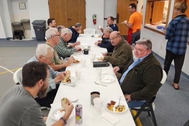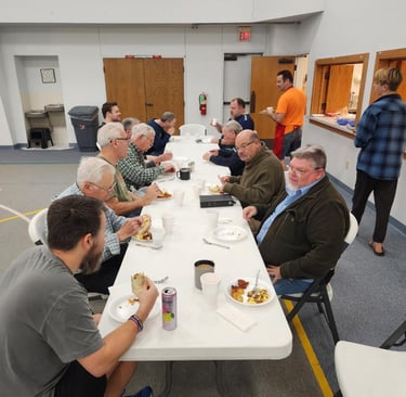 Periodically, the men are invited to meet for breakfast provided by those who enjoy cooking.