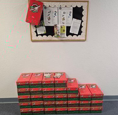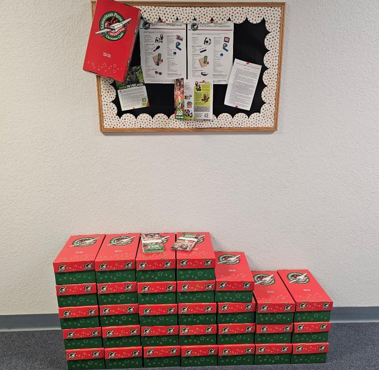 In 2025, the chapel donated items for 51 shoeboxes. Praise the Lord!