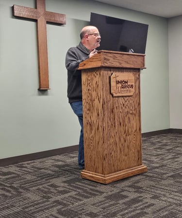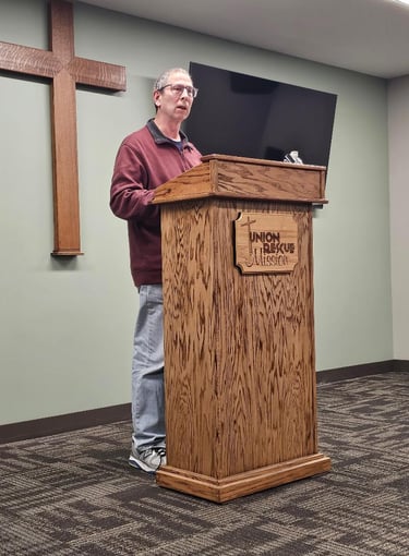 Every other month, three men share messages from the Bible on a Friday night to the men who choose to attend the chapel meeting.